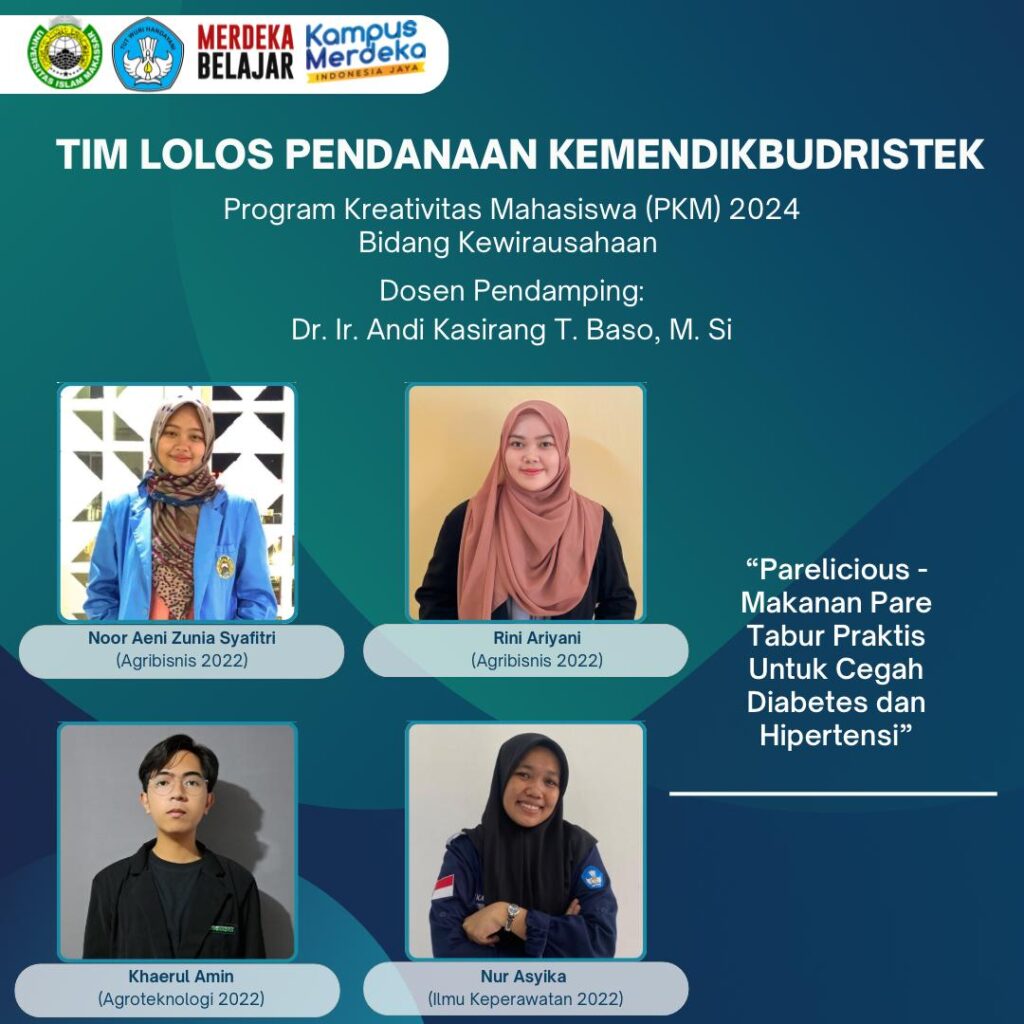 FAPERTA NEWS – Tim penerima pendanaan Kemendikbudristek Program Kreativitas Mahasiswa (PKM) 2024 bidang Kewirausahaan (PKM-K) dari Fakultas Pertanian UIM Al-Gazali dengan judul “Parelicious – Makanan Pare Tabur Praktis untuk Cegah Diabetes dan Hipertensi”saat diwawancara Sabtu (20/04/2024) setelah mendapatkan informasi pengumuman pada tengah malam sebelumnya sekitar pukul 23.59 WITA mengakusangat bersyukur dan berterimakasih kepada pihak kampus…