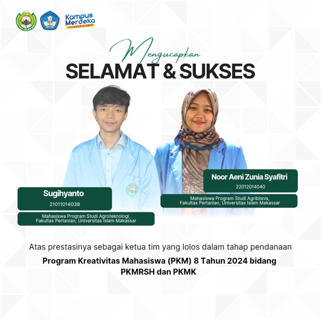 FAPERTA NEWS – Banjir ucapan selamat memenuhi grup Whatsapp sivitas akademika UIM Al-Gazali sejak dini hari setelah Direktorat Pembelajaran dan Kemahasiswaan (Simbelmawa) merilis pengumuman pendanaan proposal Program Kreativitas Mahasiswa (PKM) pada Jumat (19/04/2024) sekitar pukul 23.59 WITA. Dari 3.520 proposal yang lolos seleksi yang berasal dari 459 perguruan tinggi negeri dan swasta se-Indonesia, 5 diantaranya…